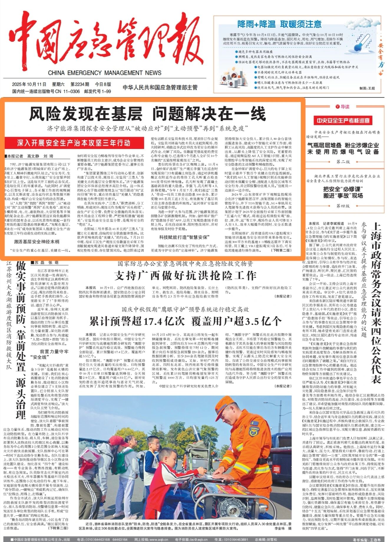 《中国应急管理报》头版头条点赞济宁能源集团安全管理工作 2025-10-16